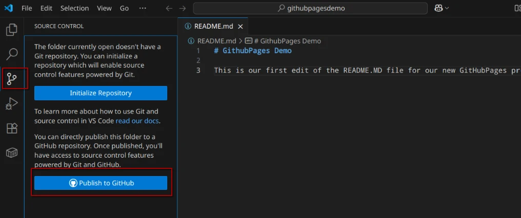 Stelle sicher, dass du die Änderungen speicherst, was z.B. auch dadurch erkennbar wird das auf der linken Seite in VSCode im 3 Symbol (Git) die Zahl 1 aufleuchtet.