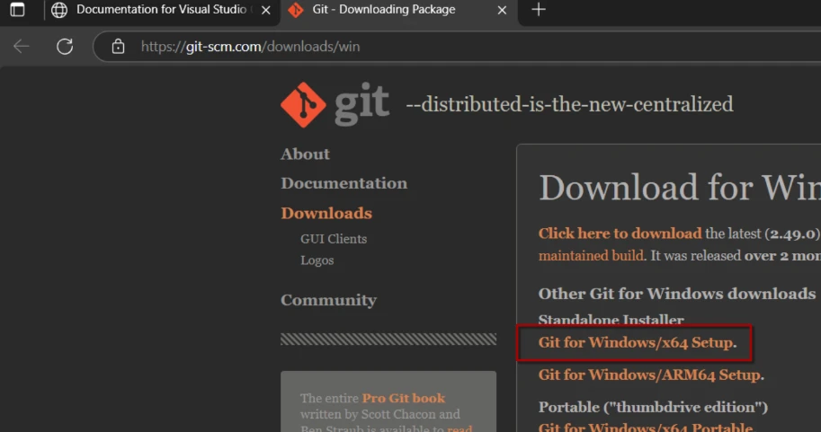 Den darauf folgenden Dialog bestätigst du, was die Öffnung der Git-Downloadseite in deinem Browser zur Folge hat. Dort lädst du die Installationsdatei herunter.