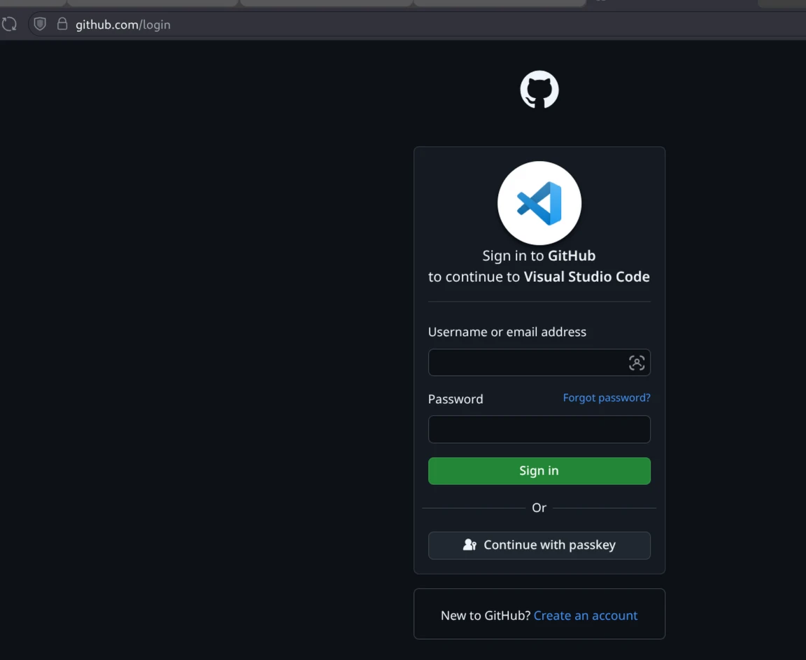 Nun sollte sich dein Browser öffnen und die GitHub-Seite anzeigen, auf der du den Zugriff autorisieren kannst. Melde dich hier mit deinem zuvor angelegten GitHub-Konto an.