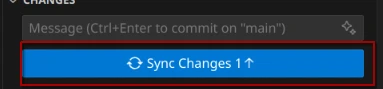 Jetzt ist unsere Änderung als freigegeben verzeichnet, aber immer noch nicht veröffentlicht (synchronisiert). Dies holen wir nach, indem wir auf die "Sync Changes" oder "Synchronisieren"-Schaltfläche klicken, um die Änderungen in das Remote-Repository hochzuladen.