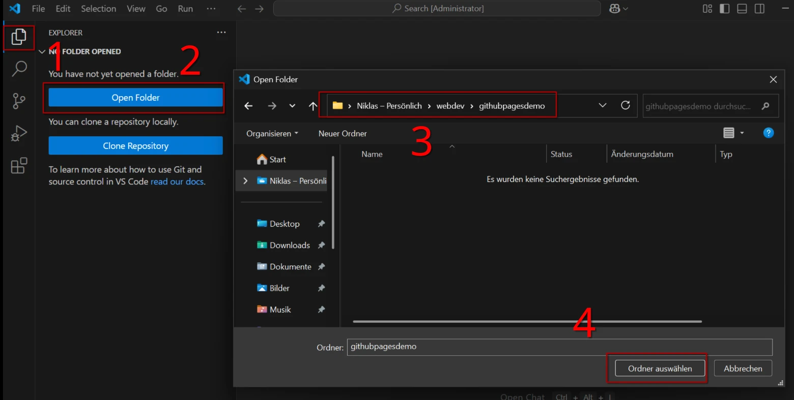 Und genau diesen Ordner öffnest du nun in Visual Studio Code.