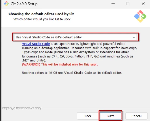Damit dein Editor (VSCode) optimal mit Git zusammenarbeitet, beendest du ihn und startest ihn nach der Installation von Git neu.