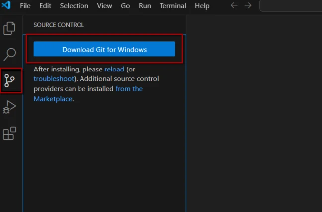 Stattdessen navigierst du im linken Bereich auf die dritte Option, die für die Git-Integration steht. Dort wirst du darauf hingewiesen, dass du Git zunächst installieren musst.