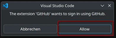 Die folgende Abfrage kannst du bestätigen, um den Zugriff auf dein GitHub-Konto zu erlauben.